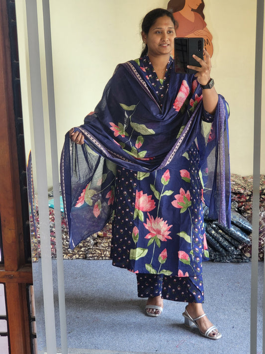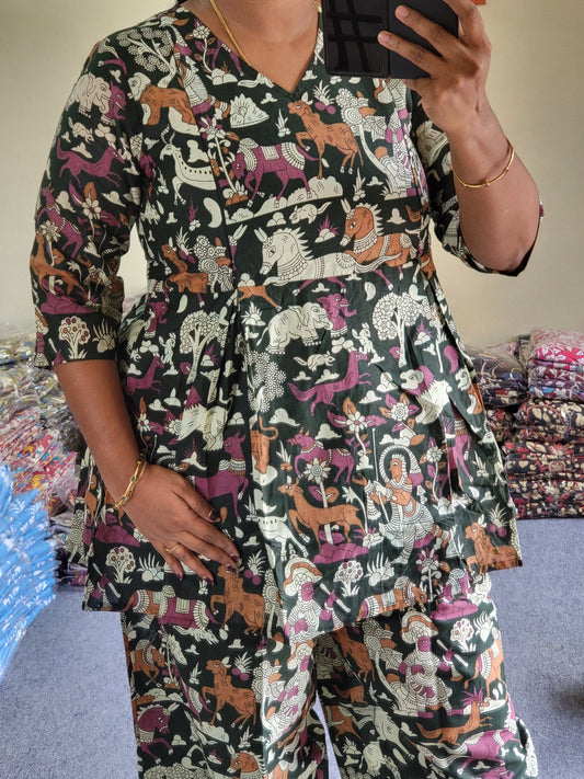 Cutwork yellow elephant print feeding anarkali Kurtis