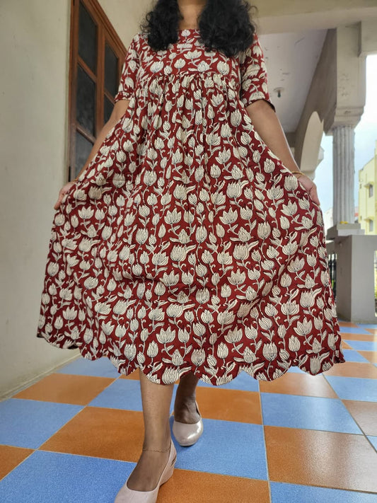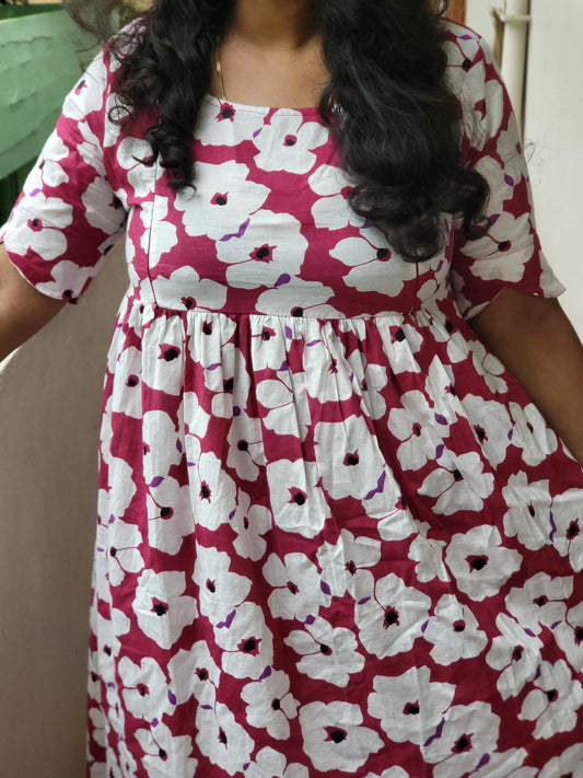 Cutwork Meroon Floral feeding anarkali Kurtis