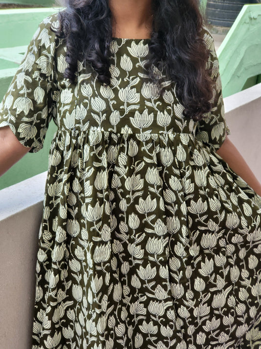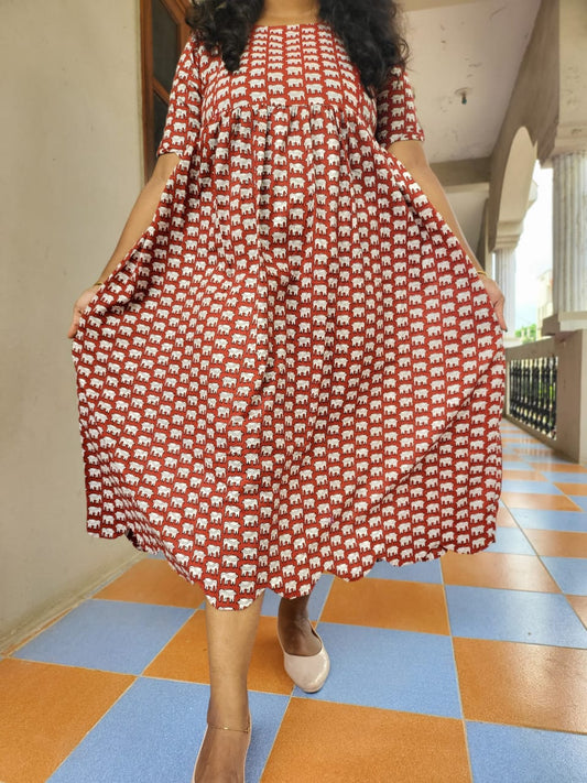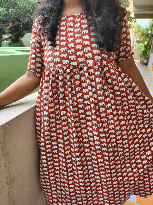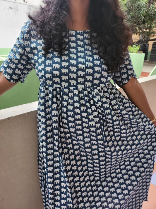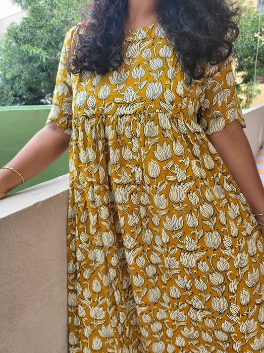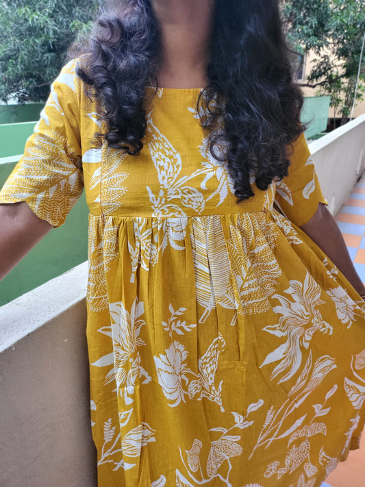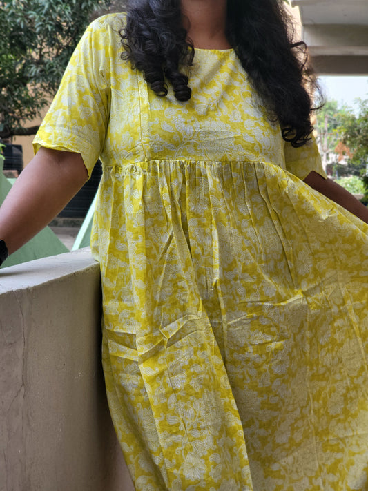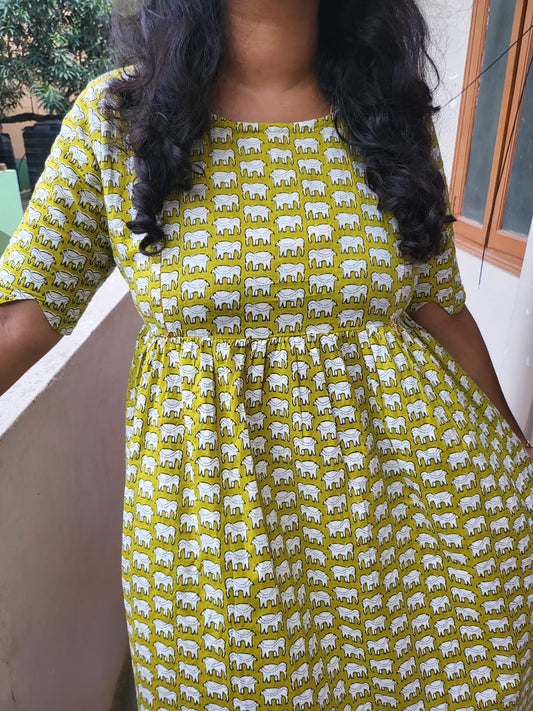 Cutwork yellow elephant print feeding anarkali Kurtis