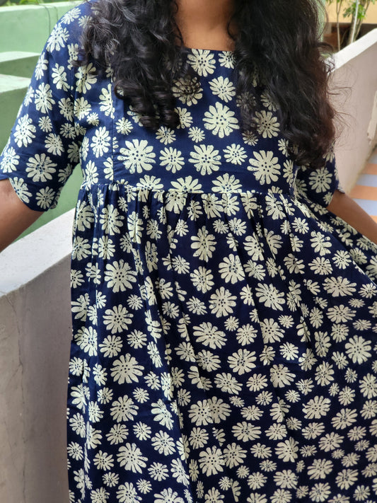 Cutwork Kalamkaari feeding Blue and White Kurti
