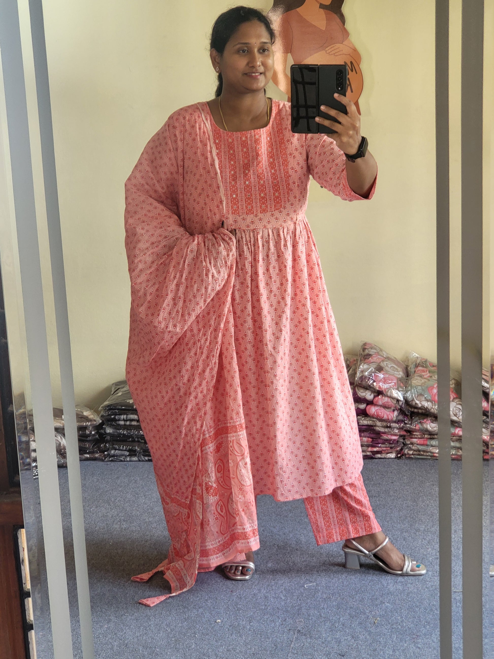 New premium collection in 3pc set feeding kurtis pant dupatta