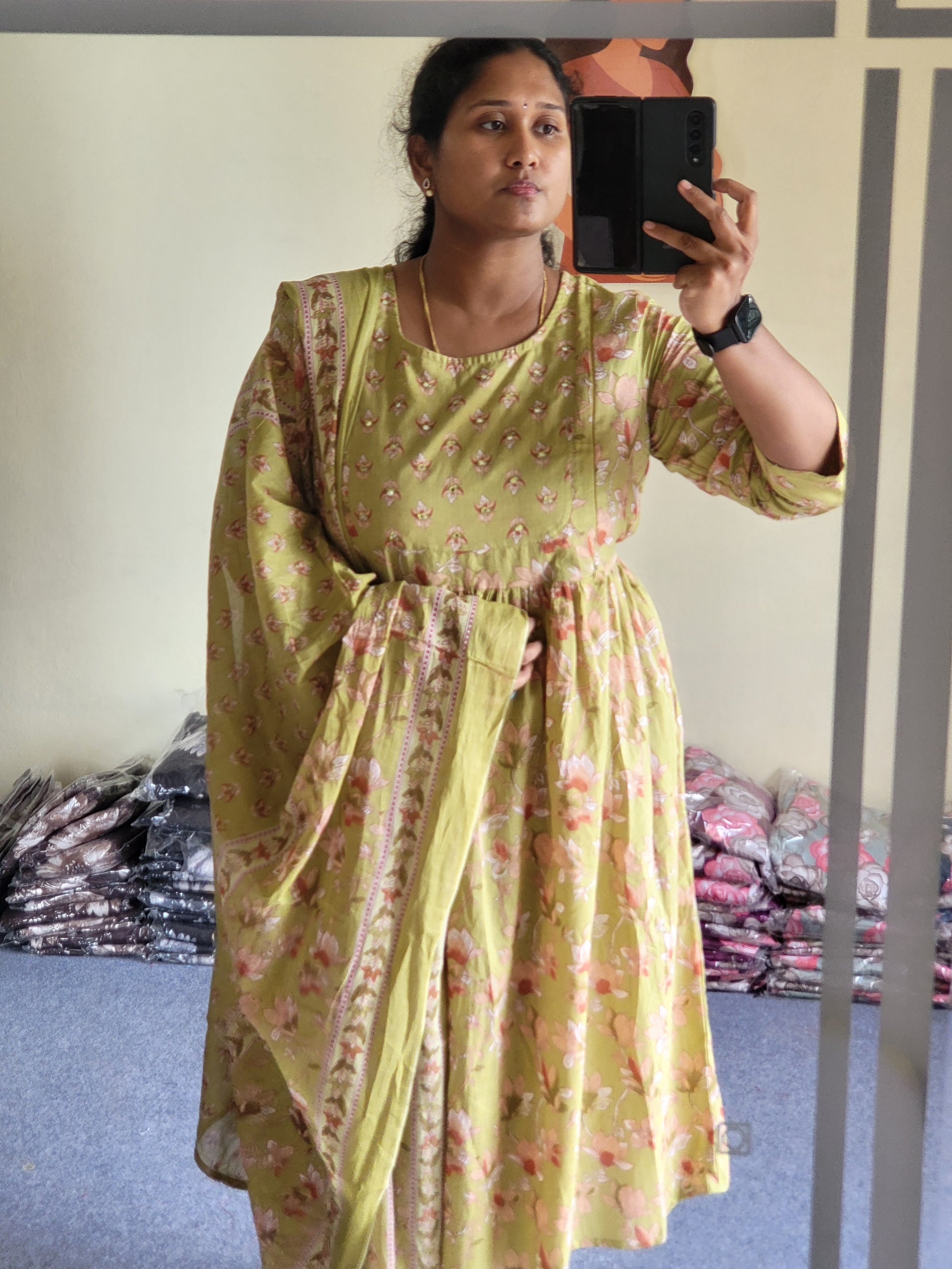 New premium collection in 3pc set feeding kurtis pant dupatta
